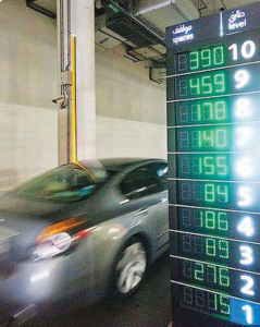 A specially developed detector, equipped with pilot lights, is installed above each parking space. It constantly checks if a vehicle is present, or not and immediately sends its observations to a central computer. The computer processes this data in order to update the information supplied to the drivers by easy to understand informational and directional signs, which are installed on each level.